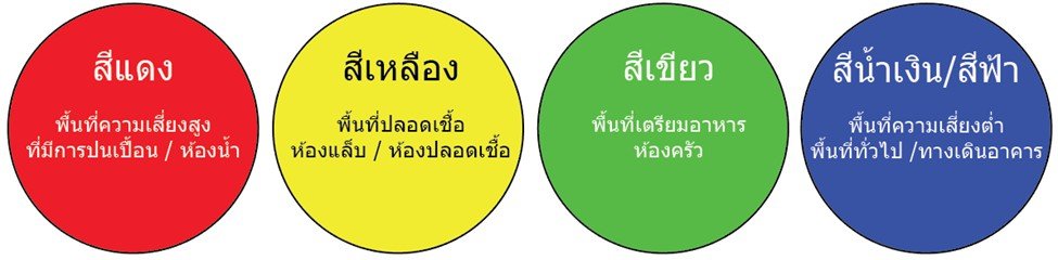 เนื่องจากมีสีของอุปกรณ์ทำความสะอาดเป็นตัวบอกพื้นที่ ที่อุปกรณ์ใช้งาน จึงป้องกันการหยิบใช้อุปกรณ์ที่ผิด