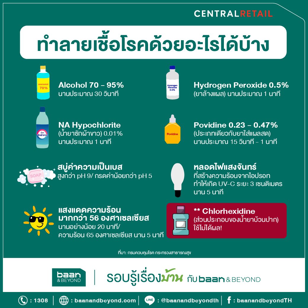 - Alcohol 70 - 95% นานประมาณ 30 วินาที